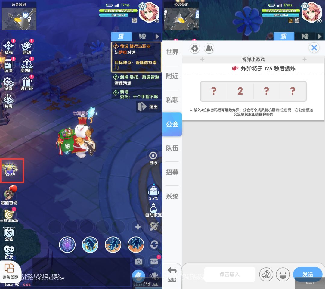 活动期间在公会频道还有拆炸弹小游戏哦~需要在倒计时之内拆除,即可获得奖励~