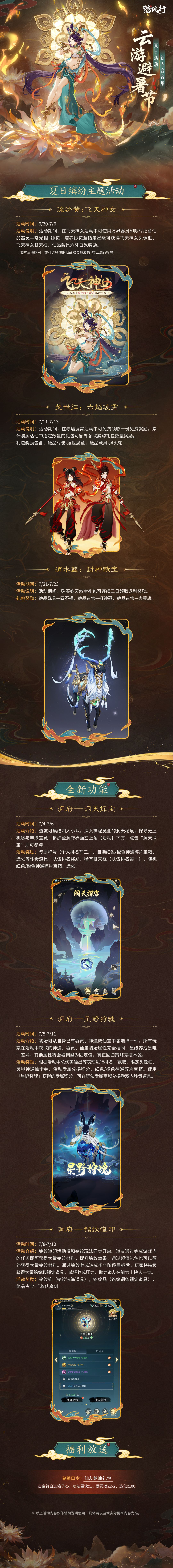 :输入兑换码 “仙友纳凉礼包”,古宝符、功法要诀等资源免费领,战力避暑双丰收~