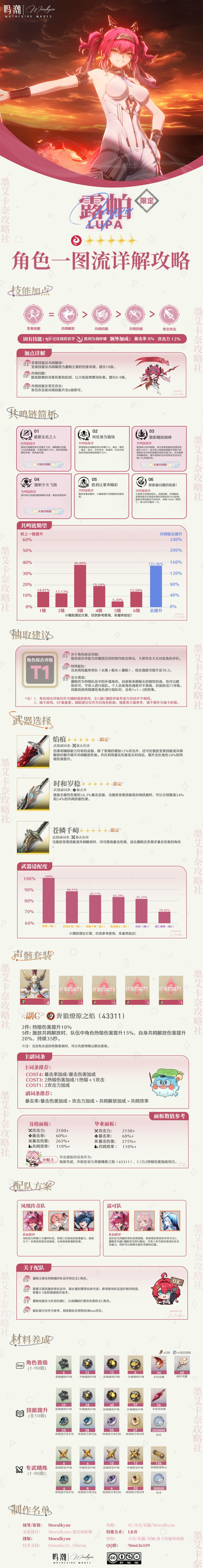 从2.0版本开始,我们将采用全新的模板制作角色一图流攻略!攻略组的同学们将会按照卡池顺序,逐步更新先前全部角色攻略,常驻五星和漂泊者的相关攻略将会不定时更新。 全新的黎那汐塔模板修正了先前模板的部分重大Bug,具体如下:
