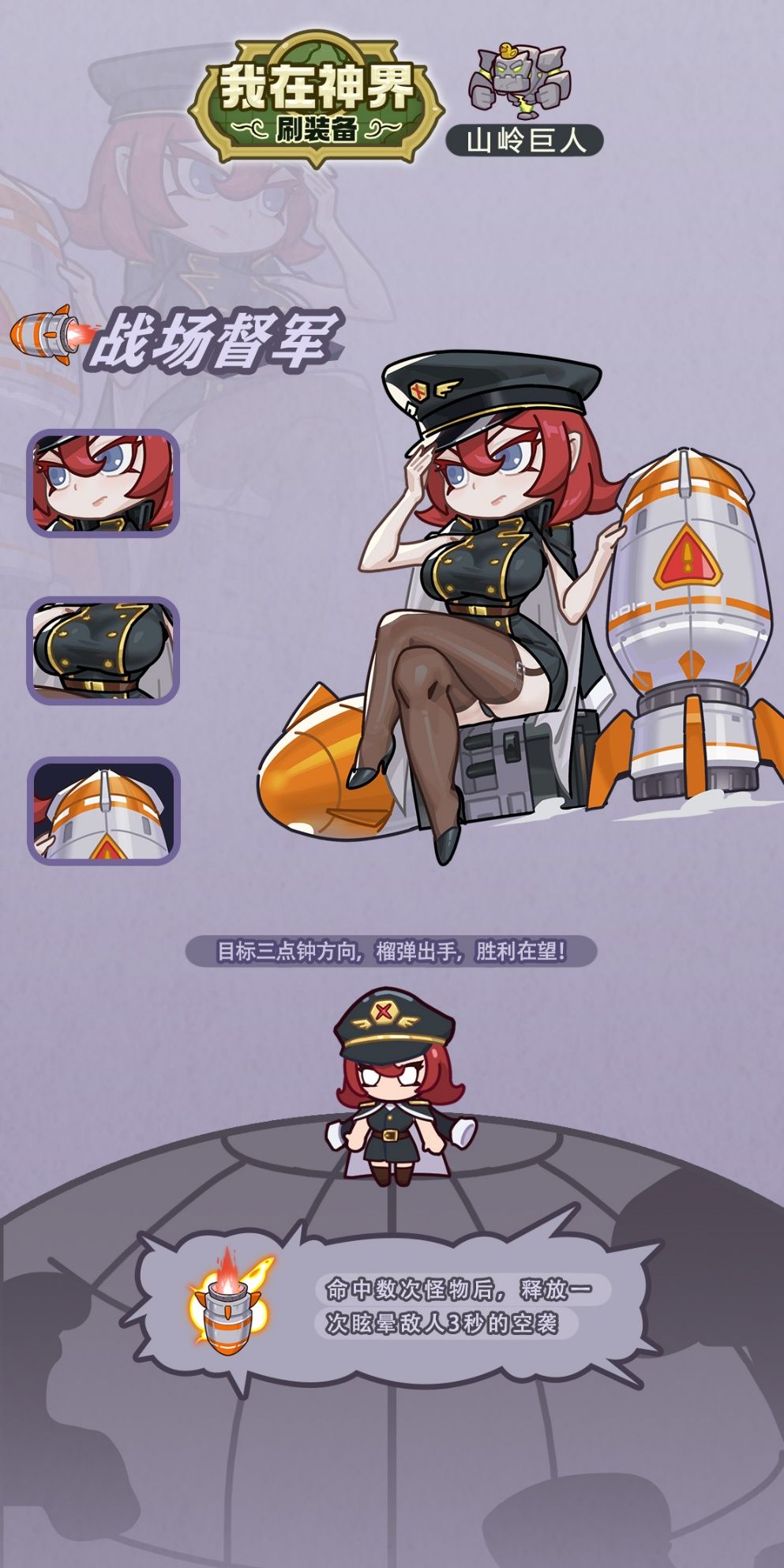 皮肤效果预览:新增攻击方式-空袭榴弹,命中数次怪物后,释放一次眩晕敌人3秒的空袭。皮肤星级提升后,可增强空袭榴弹的攻击效果,星级达到3星后局内可初始获得【地震伤害增幅】【地震连击】【地震重击】其中一张卡牌。
