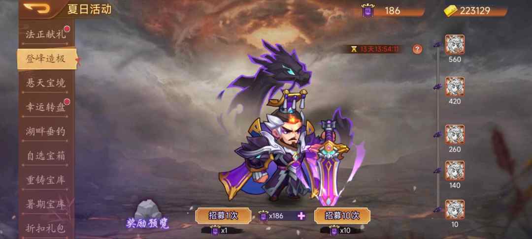 活动内容:活动期间,可通过消耗招募令进行招募武将,up武将的概率会高于其他同档位武将(每期活动会更换up武将),每次招募可获得10名望,名望可在名望商店兑换道具。