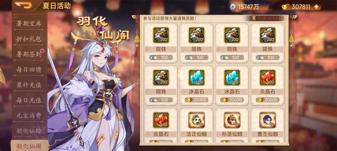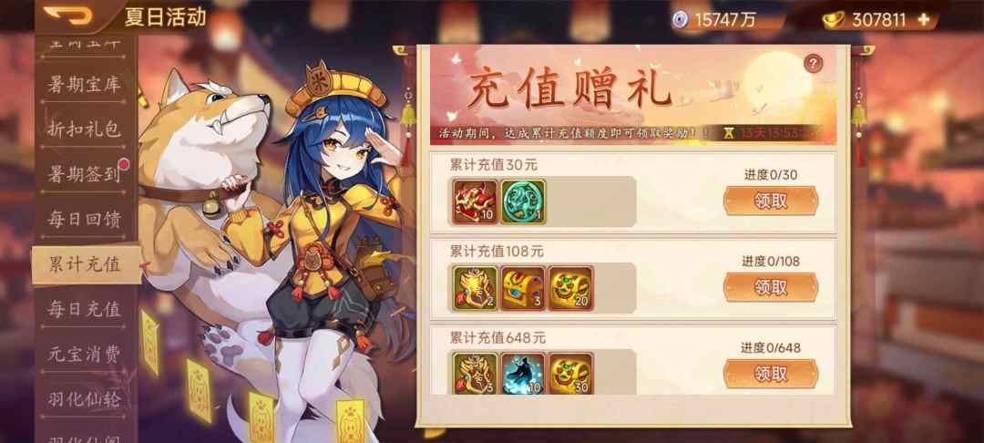 活动内容:活动期间,累计消费元宝达到目标值即可领取奖励!