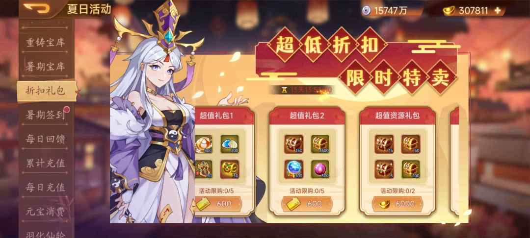 活动内容:活动期间,超值礼包限量折扣出售。