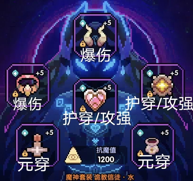 秘境环境下核心、勋章主属性护穿收益较高,副属性统一为爆伤+水攻