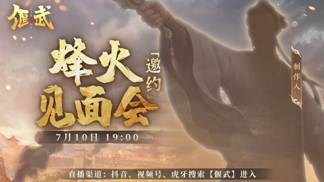 各位主公,机不可失,记得来看7 月 10 日《偃武》烽火见面会直播,与制作人冬冬在线Battle,观看直播即可领取定制称号【烽火先登】,一直保留到公测!一起在《偃武》乱世中,成就属于您的霸业传奇!