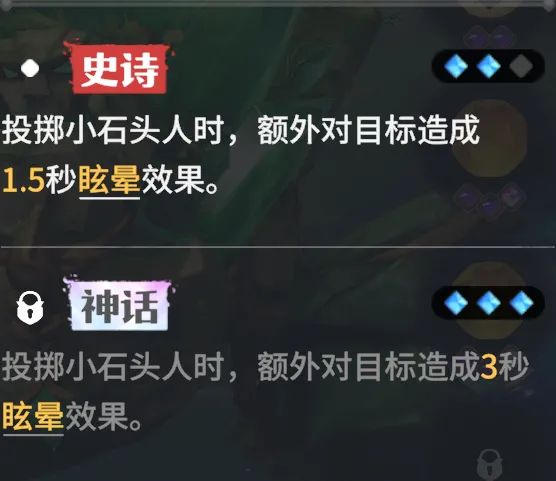 史诗进阶:投掷小石头人额外附加1.5秒眩晕,对敌方后排控制效果很强。