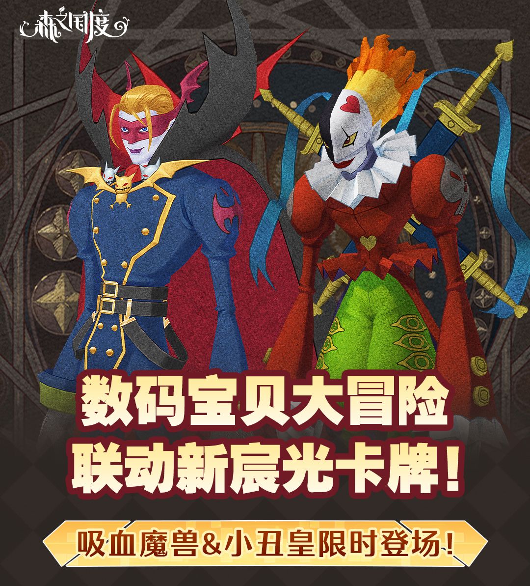 数码宝贝大冒险联动新宸光卡牌!吸血魔兽&小丑皇限时登场!