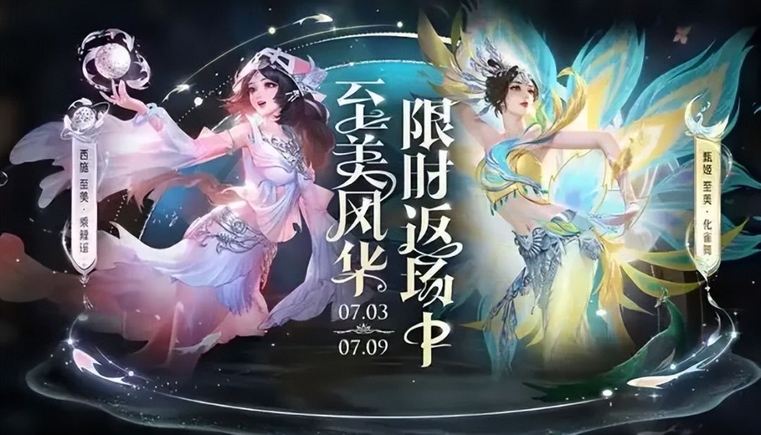 直售返场:7 月 3 日 - 7 月 9 日,西施 - 至美・乘鲤谣 888 点券,甄姬 - 至美・化雀舞 1788 点券。