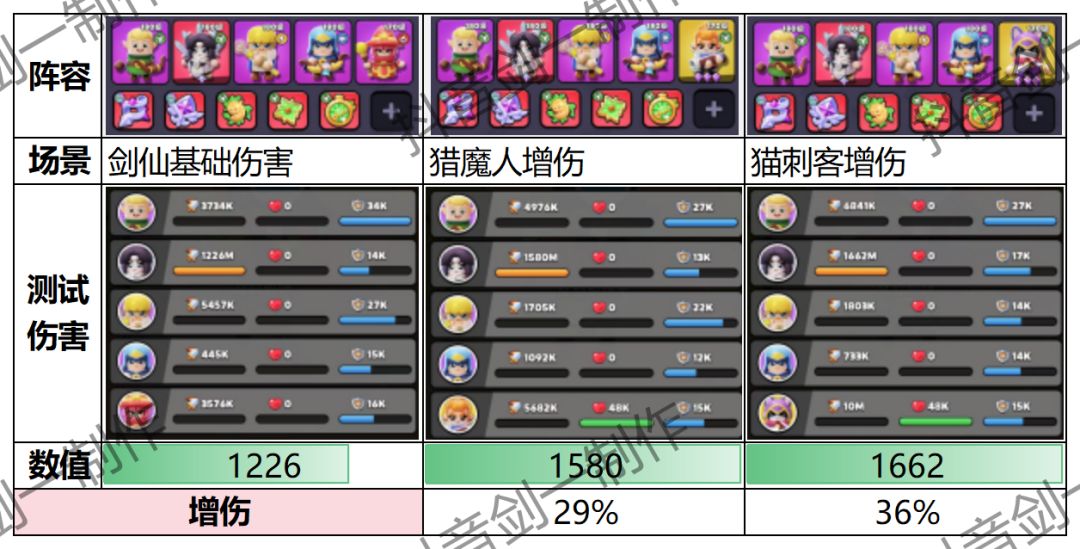 本轮测试模拟单挂件不出战,仅上阵状态伤害增幅
