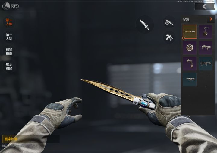 “赢家通吃”主题军需主要是一把近战武器此进战武器的切刀简单快捷,而检视则是转人物大拇指旁边的转盘,转到除金色的就没什么,但转到金色的人物会吹哨子,是非常有娱乐的一款刀了