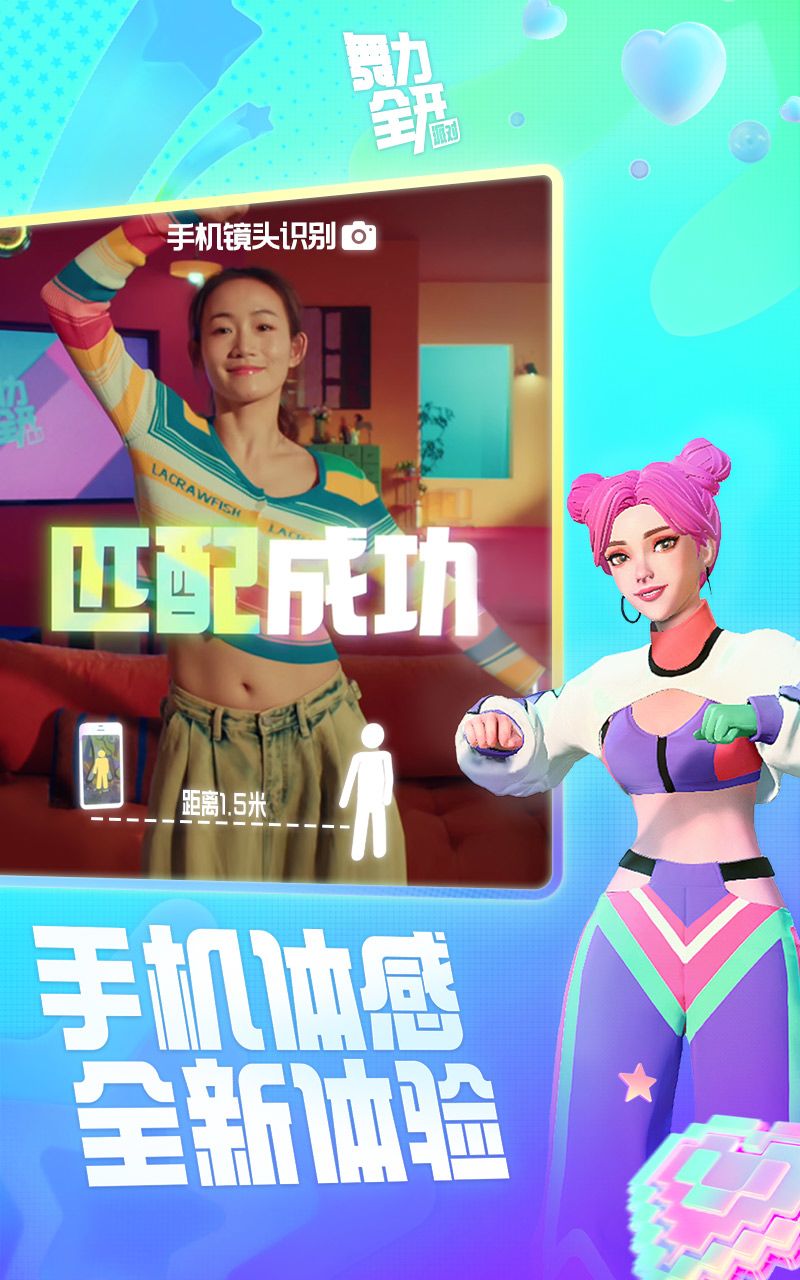 打破次元壁的创新体感音舞派对手游来了!作为风靡全球的《舞力全开》正版IP移动端新作,旨在为玩家带来一场充满动感与欢乐的音舞派对体验。玩家只需一部手机就可以随时随地与同好和朋友一起跳舞,感受音乐与舞蹈的无限魅力。随时随地,舞力全开!
