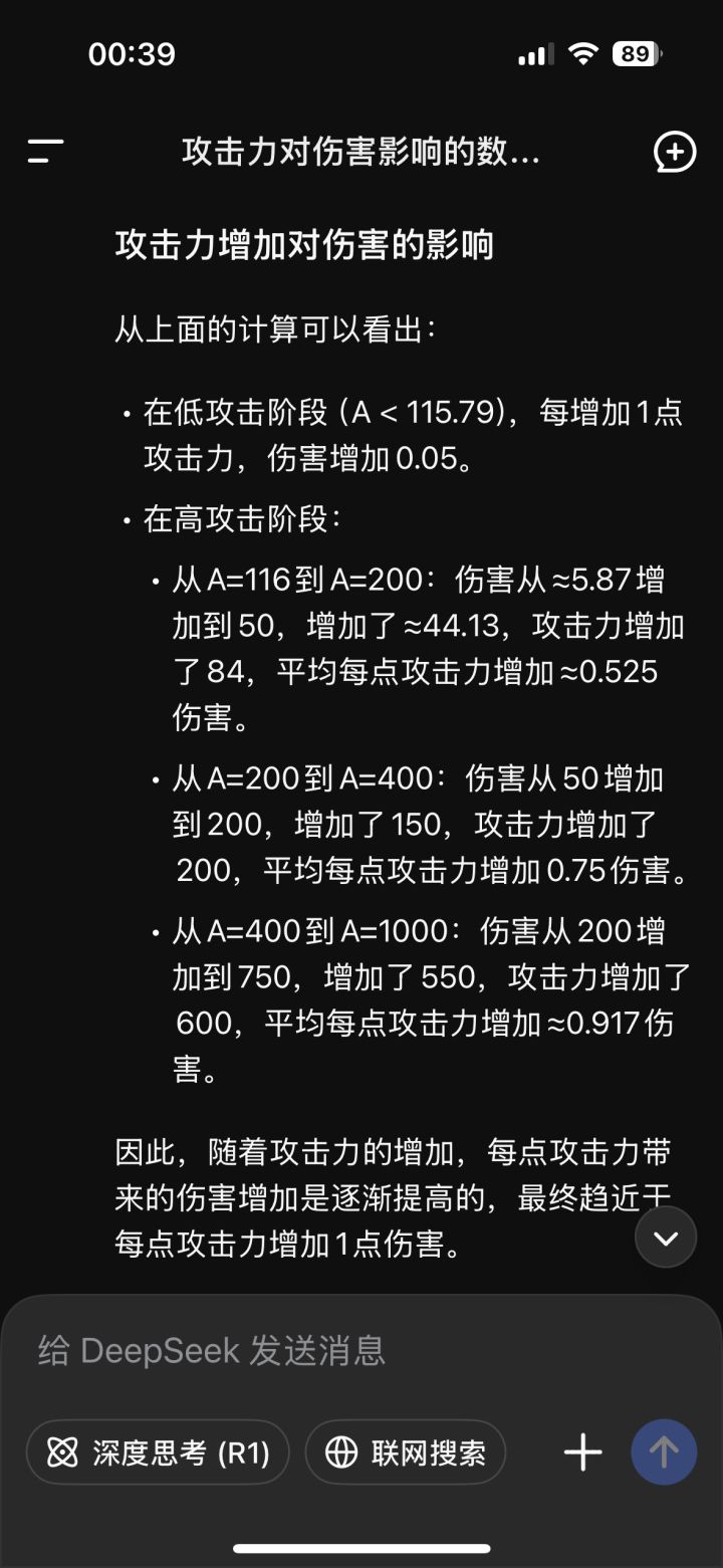 用deepseek研究了一下攻击力增长对于伤害的影响。得出以下结论