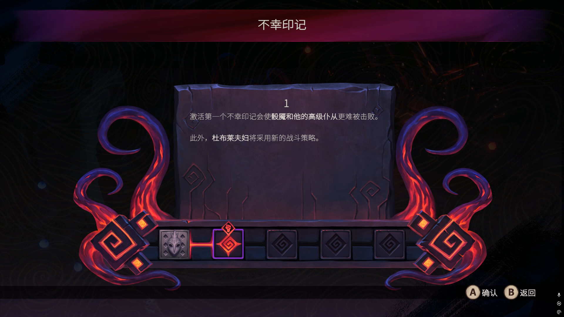 在通关游戏后,我们还能解锁更多的难度(不幸印记)比起说是难度提升,不如说是一种奖励~boss会出现更多的新招式,这下又可以战斗爽了