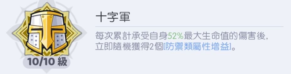 庞培有不错的回血能力,所以【十字军】非常适合她,她可以触发多次效果来提升自己的坦度,例如减伤等效果。