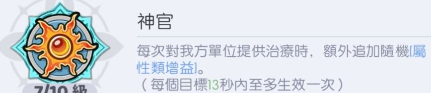 - 带【神官】可以给血量最少的角色提供增益效果。