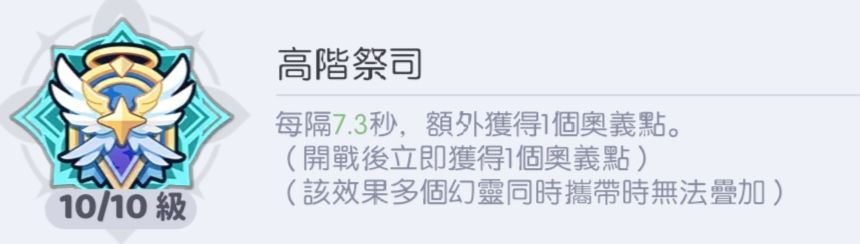 奥术队本身就需要奥义点,灯神用【高阶祭司】效果最好,进一步加快奥义点的回复速度,而且灯神的天赋不仅可以概率触发,还可以次数稳定触发,进一步增加队伍的生存能力,并且灯神还可以给队友奥义减费,所以相比圣堂队更适合奥术队。