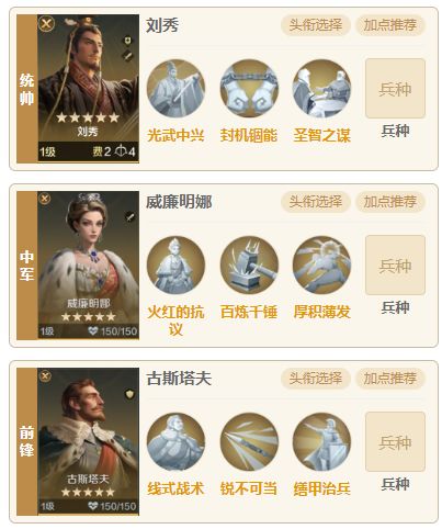 刘秀携带封机锢能和圣智之谋,刘秀能够提升自身主动技能的发动效率能够稳定的发动这俩个技能,每回合造成禁疗+锁闭,可以有效的克制肉队。