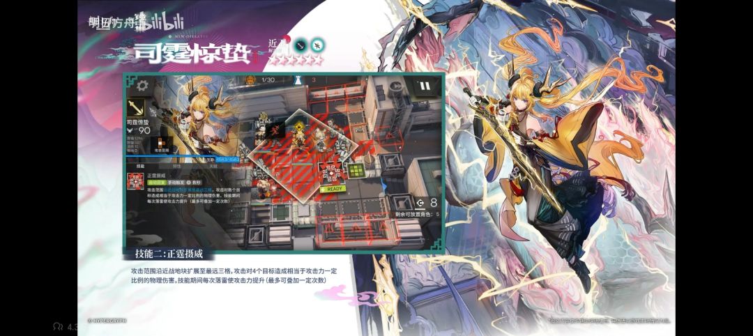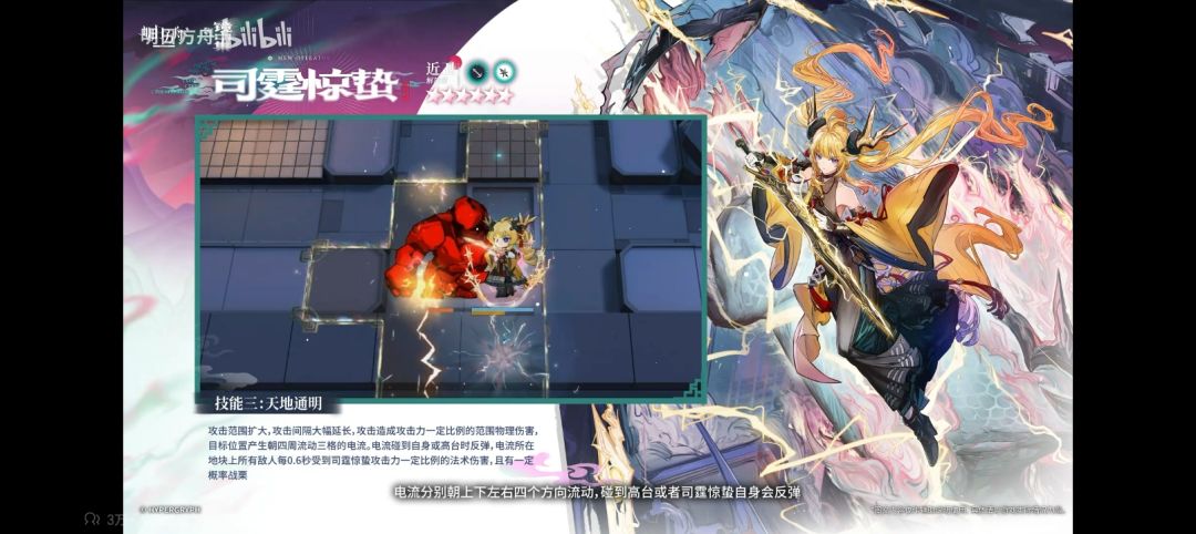 三技能更是吃死地形,电流0.6s触发一次伤害,在本体大幅降低攻速后成为主要伤害来源,理想情况下是司霆把敌人夹在自己和高台中间,理论最优输出地形是三高台加司霆,这样可以反弹所有电流(几乎不存在这种地形,但是有相似的)