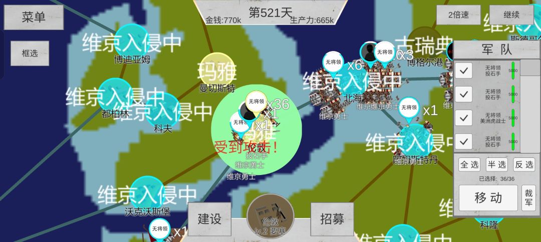 ②那时候维京人入侵,维京人有很多将领,我不在乎,只有那3个黑将,从纽芬兰出发,招募30个美洲虎和20个投石手,直接占领英格兰,把维京人给我们打下的江山吃了,接着纽芬兰的维京船来了,神之一手,放一个热带部落,让他们进不来,接着把伦敦调成要塞,在那里靠着大本钟干死3个将领,接着立马走海路,去斯德哥尔摩,到那时欧洲基本上有了