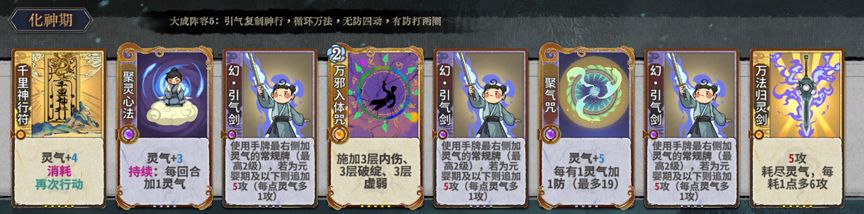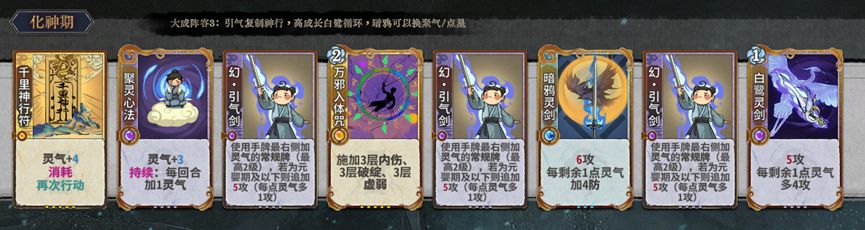 聚灵心法>白鹭>巨鲲>>万法/神行(化神卡自信可以拿,但不推荐,因为会导致过渡血量偏低,多活一轮比什么都重要)
