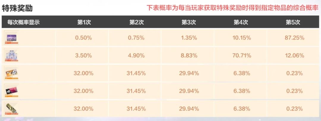 ①5个不会重复获取的特殊奖励: