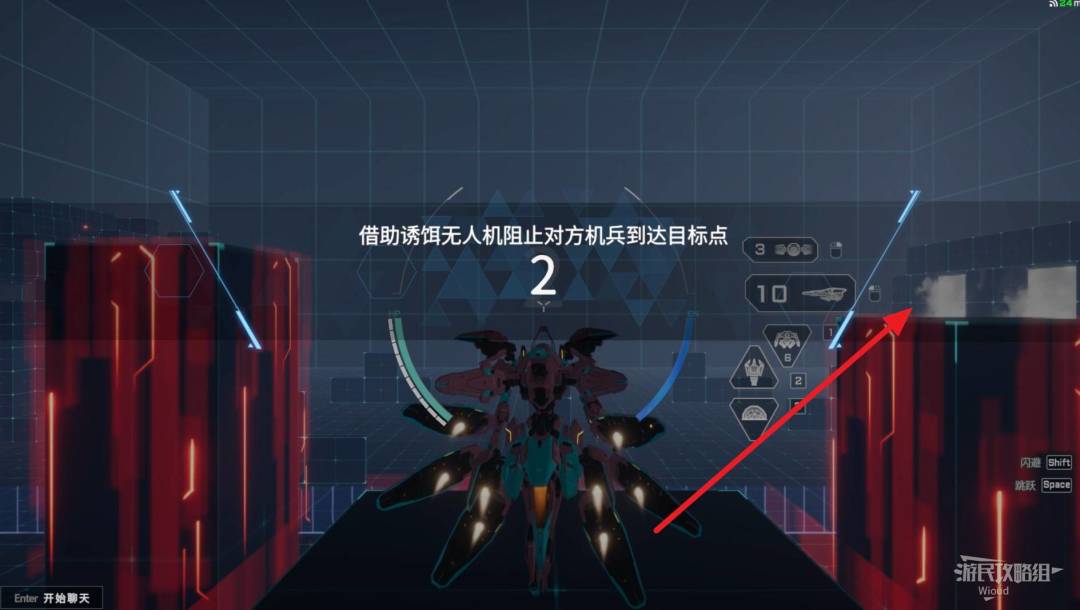 开局建议往右边柱子跳,然后立刻释放无人机诱饵,无人机诱饵特性会随着玩家同时攻击敌人。