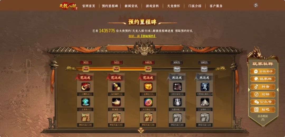 距离7月25日的公测开服仅剩21天时间,想必大家都非常期待!伴随着归来热度的提升,我们的预约人数也是来到了140万!!!还未点预约的大侠动动小手领取奖励啦!800绑元、3级红宝石、千淬神玉等丰厚奖励在向你们招手~