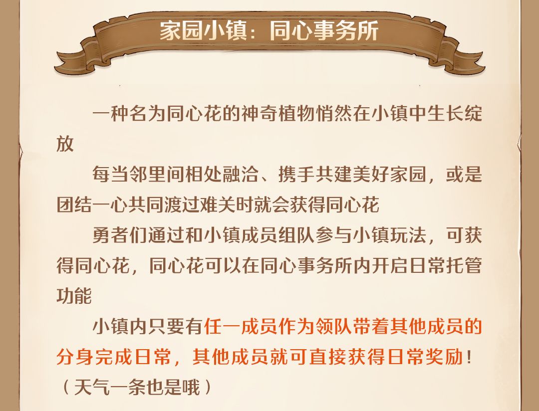 以及家园小镇全新功能【同心事务所】帮助勇者们实现