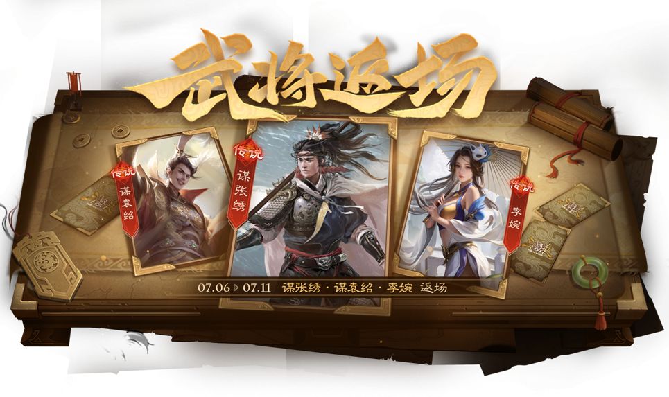 *2025-7-6 00:00:00 ~2025-7-11 24:00:00,璇霄寰宇*陆绩 100夺宝碎片、夺符愤膺*马日磾 70夺宝碎片限时上架夺宝商店。2025-7-12 00:00:00 起,璇霄寰宇*陆绩、夺符愤膺*马日磾 下架。