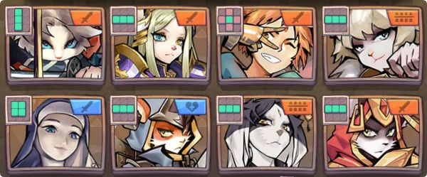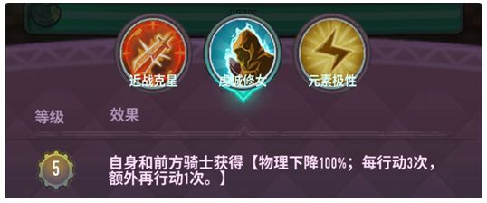 【虔诚修女】:自身和前方骑士进入战斗获得物理损失debuff(物攻清0,目前存在显示BUG)和再动BUFF