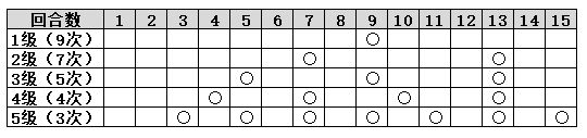 即第1~3回合每回合行动,第3回合可行动2次,第5、7、9、11、13、15回合自身与前方骑士均可再次行动