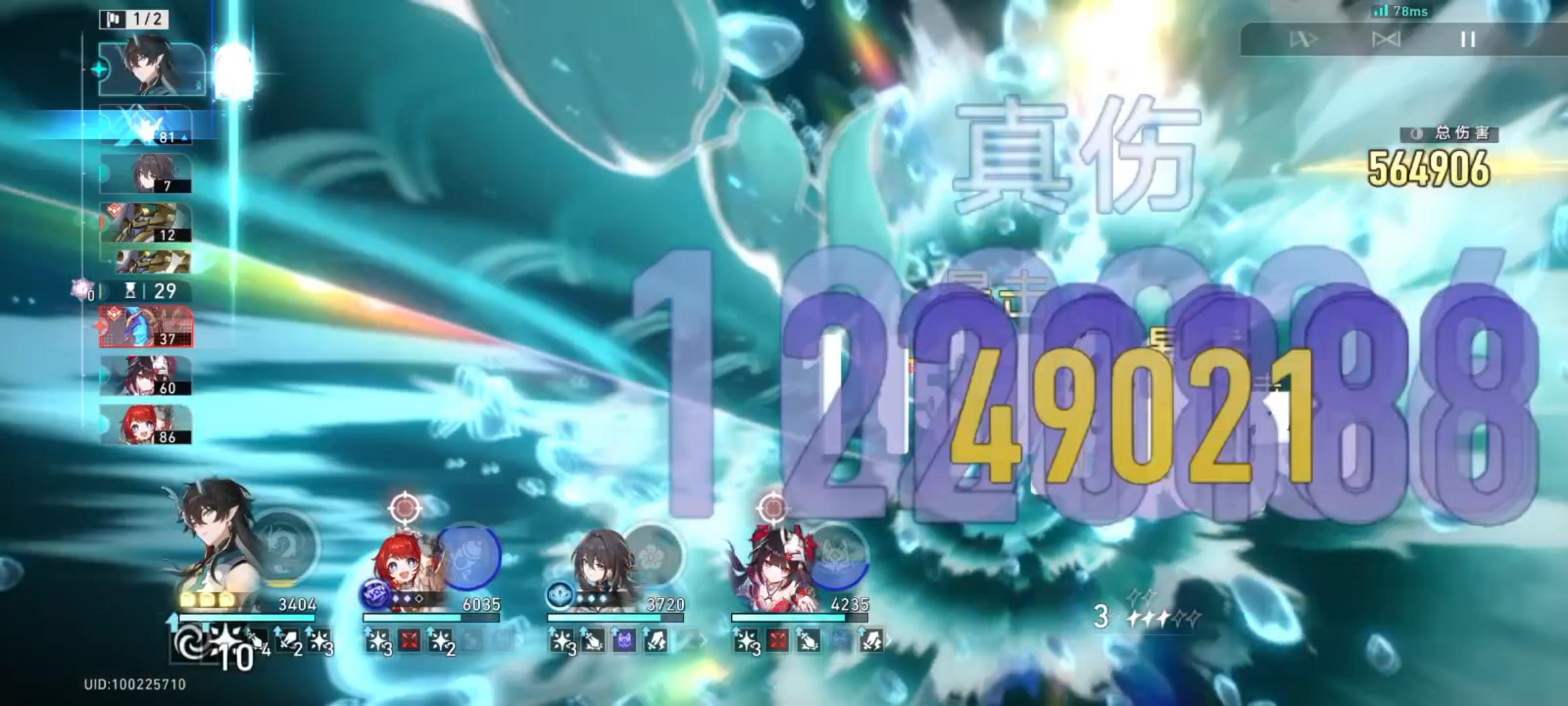 uid配置可查,完全一样的配置,这是一魂狼尊在混沌12上半的表现,因为优化了充能绳保证一动一大所以伤害略微下降