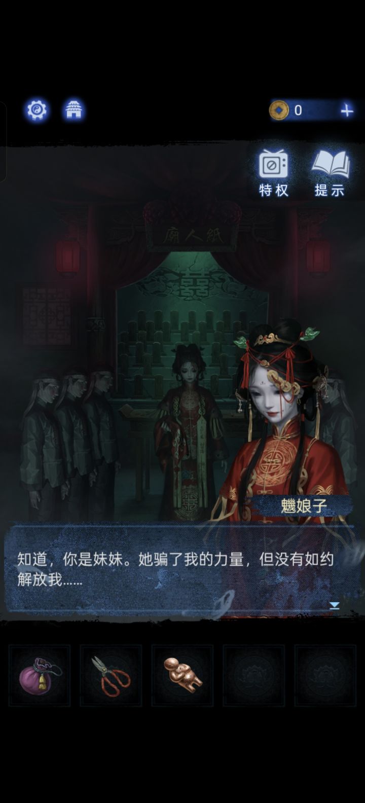 第二:还有纸7的解谜,我真的无语了,我玩之前好像看到有人说解谜很少,大多都是剧情。我还心想挺好的嘞,我不喜欢玩很复杂的解谜,结果???你说解谜少?莫琪回魂那解谜好歹还能玩,起码知道线索……后面千子庙那我都懒得说,我真不知道到底要干嘛(可能是我真的没脑子吧),一直在看广告,一些东西更本看不见,那个全家福的照片我是真看不到……甚至后来解不完,我直接困死了睡着了😓之后剧情我观感就一直不好。