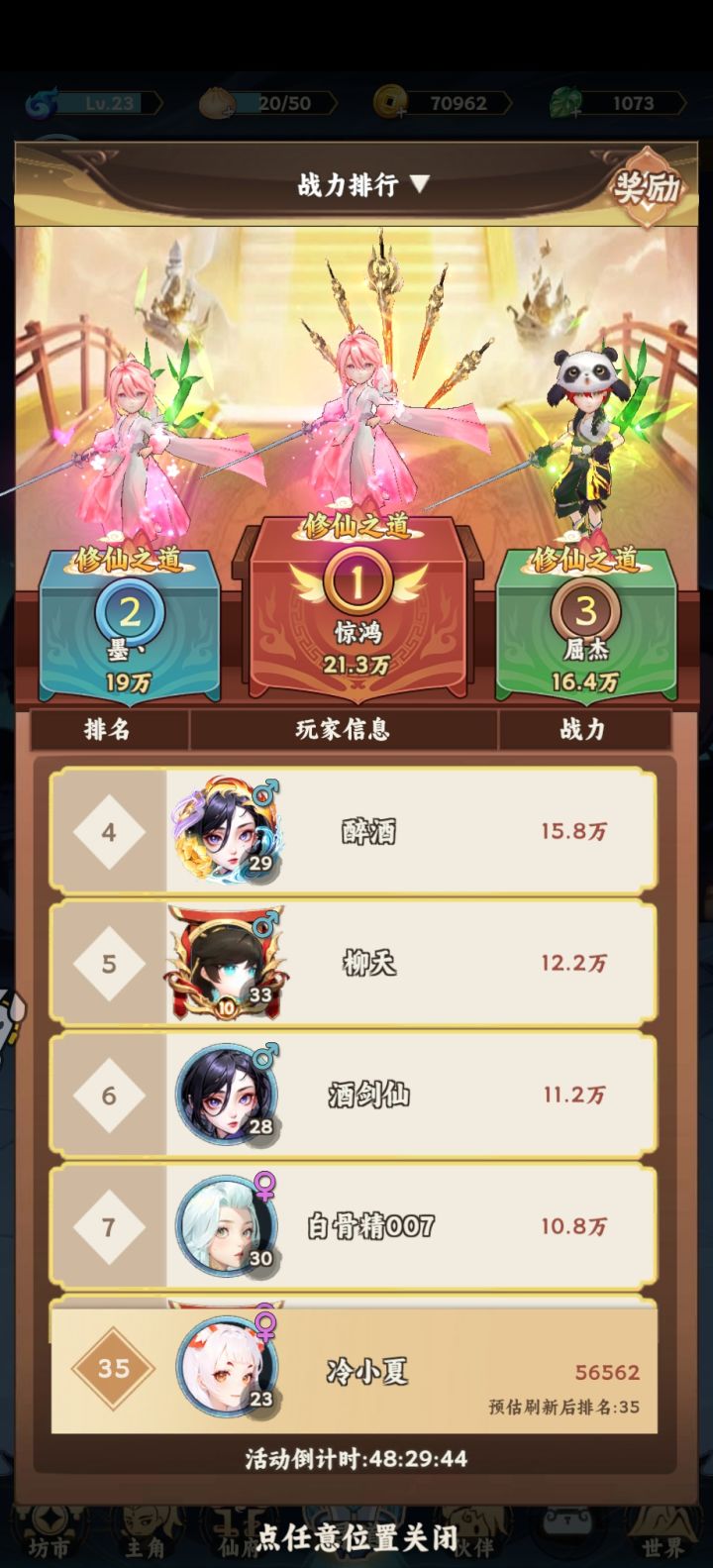 目前把12个技能写完了,原推荐阵容我删了,因为玩了几天我阵容更新了。目前战力23w,进度打到了11大关通天河