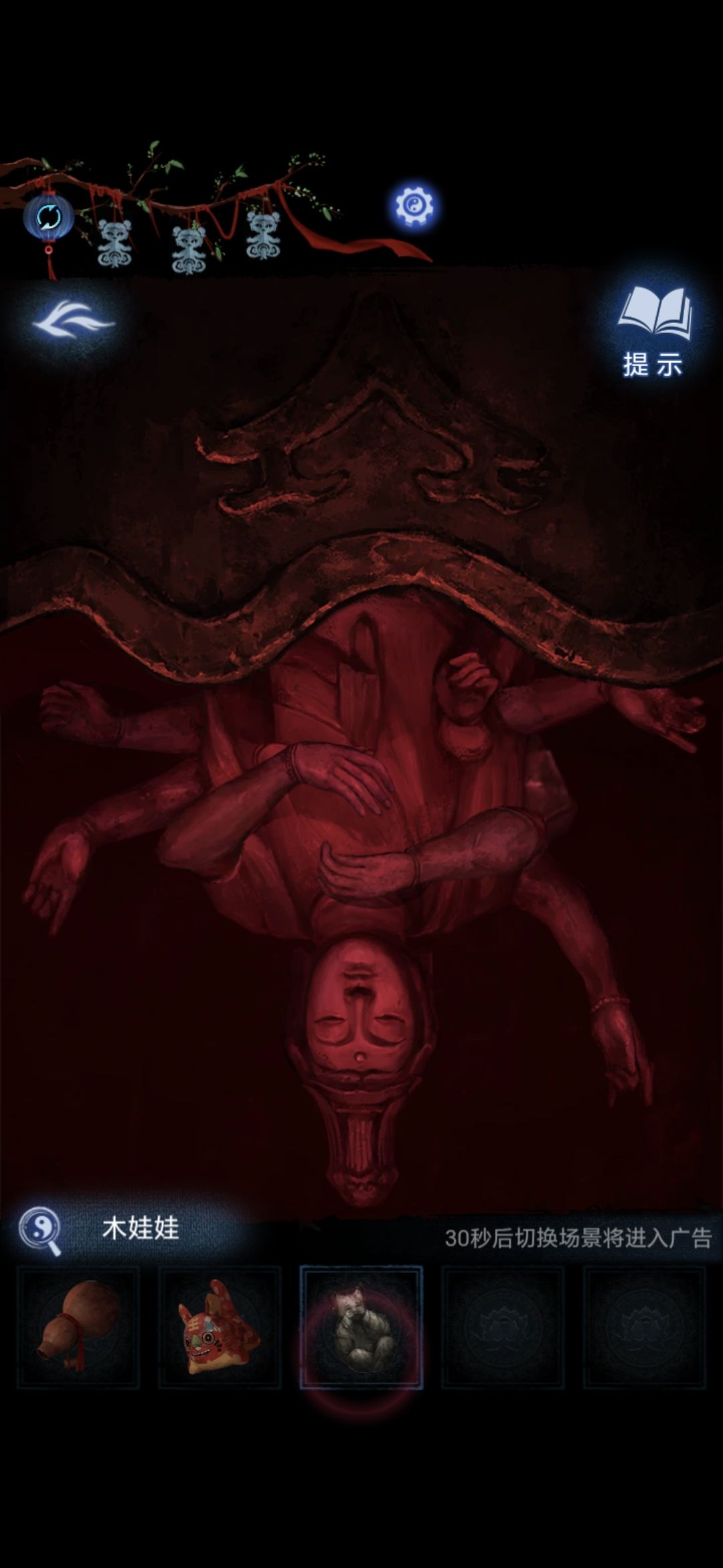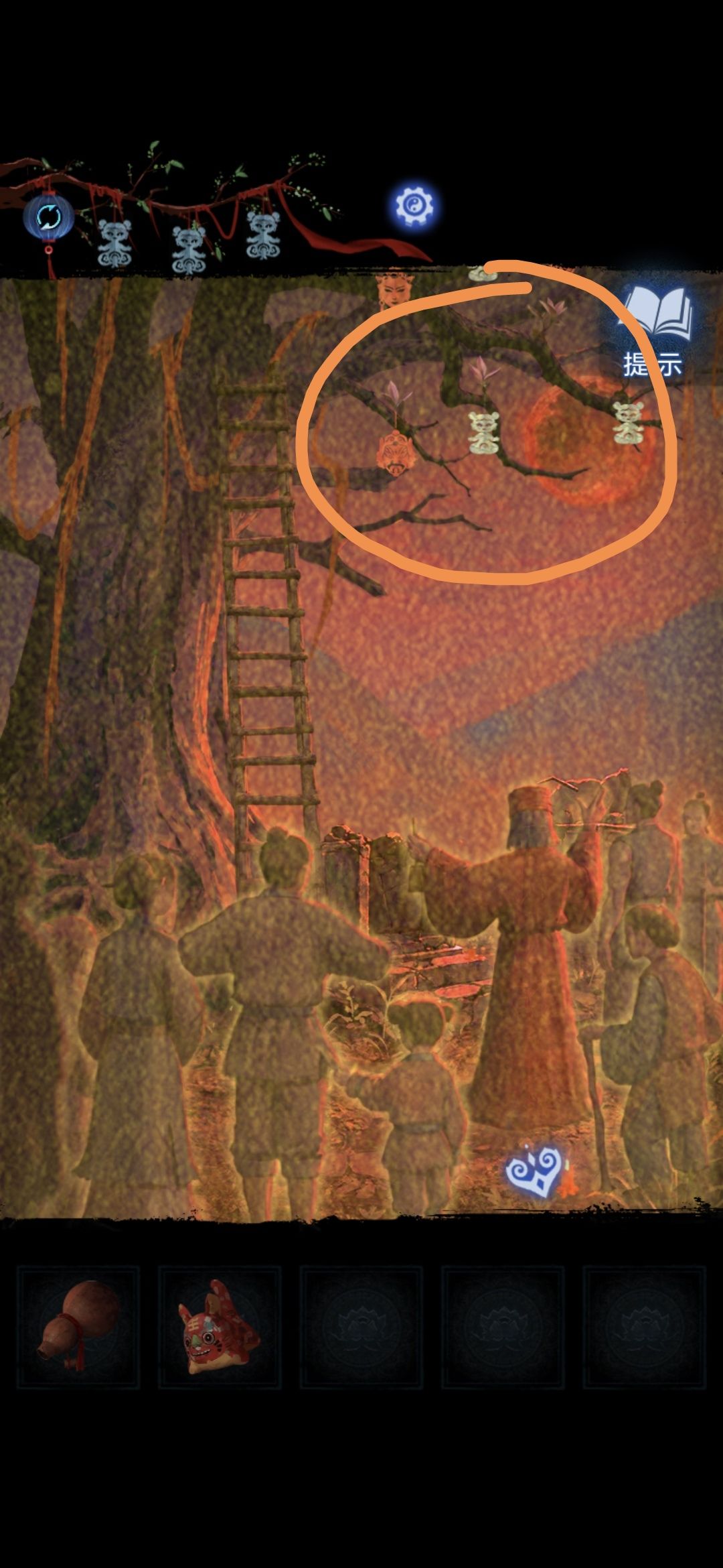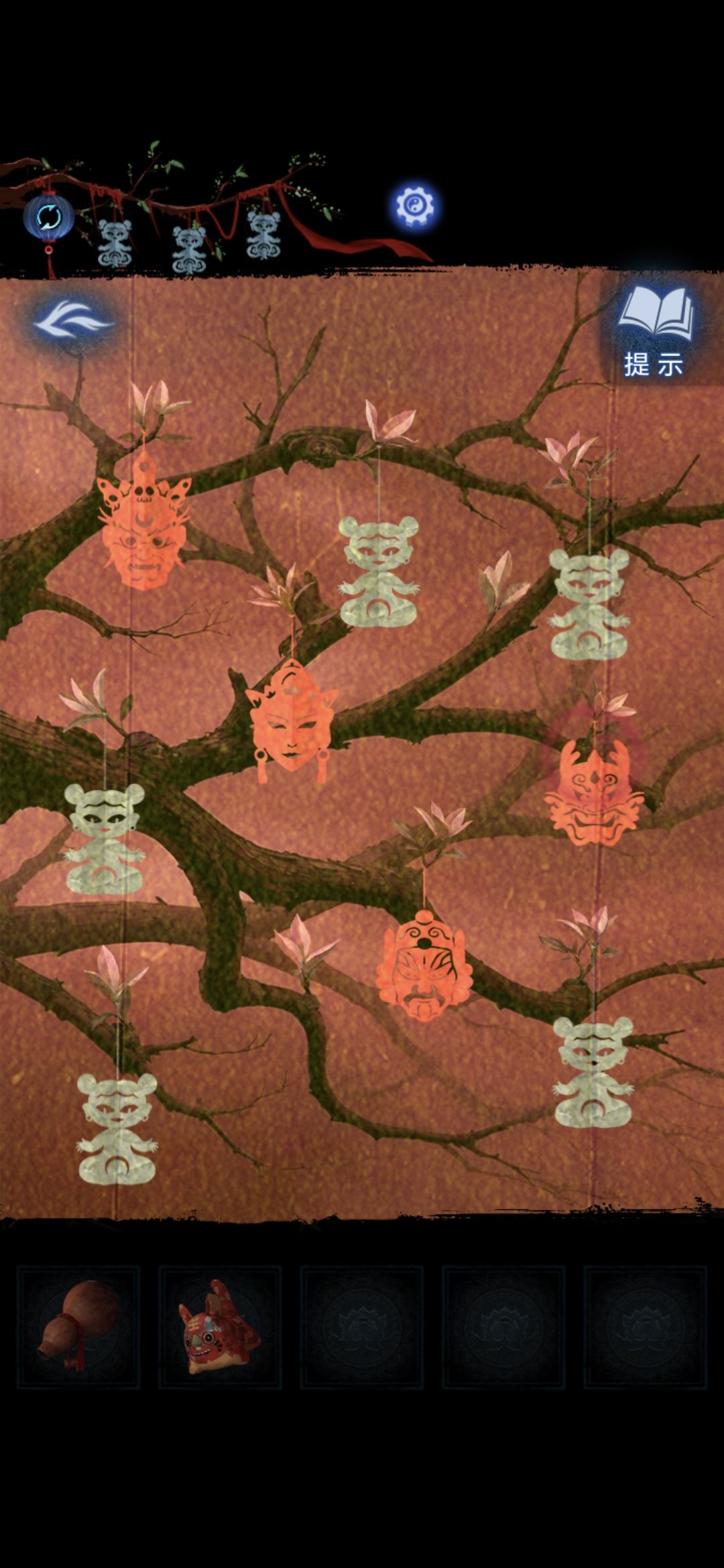回到树下,点击树上剪纸,根据莫黎视角树上剪纸顺序和树上面具顺序排序,排完序获得木娃娃