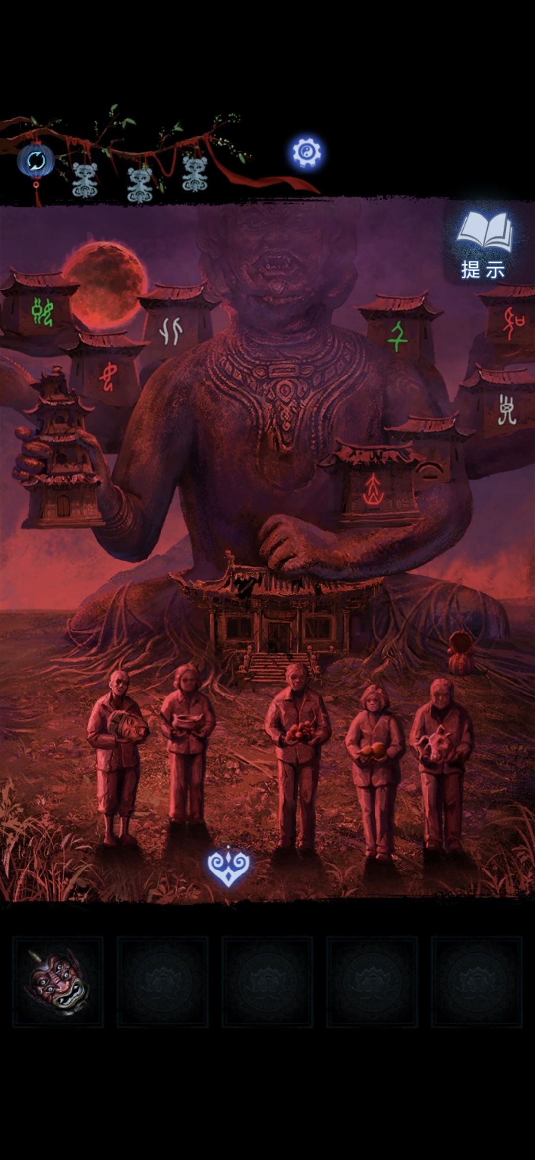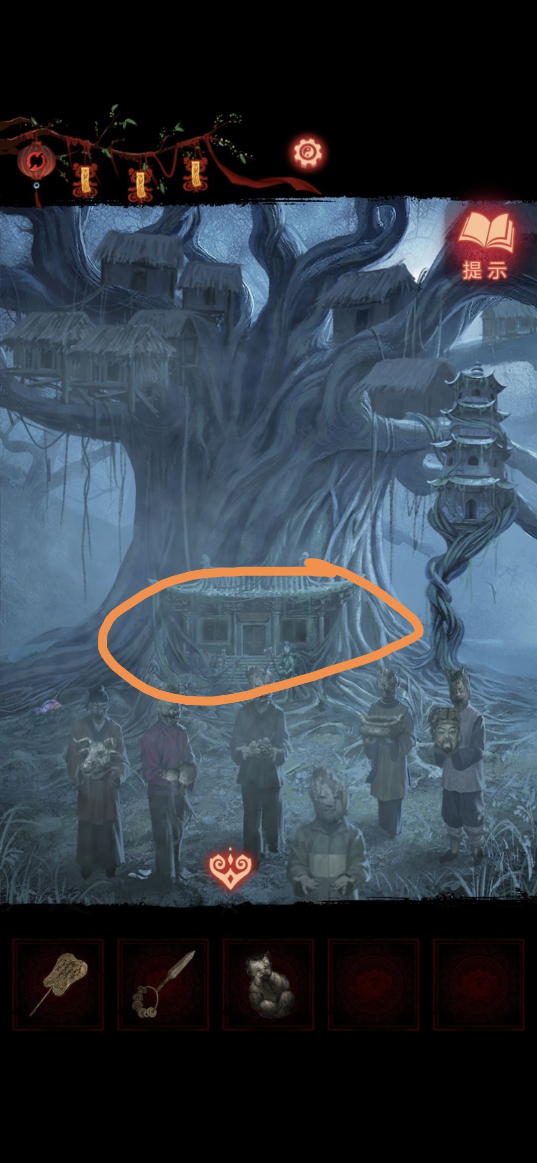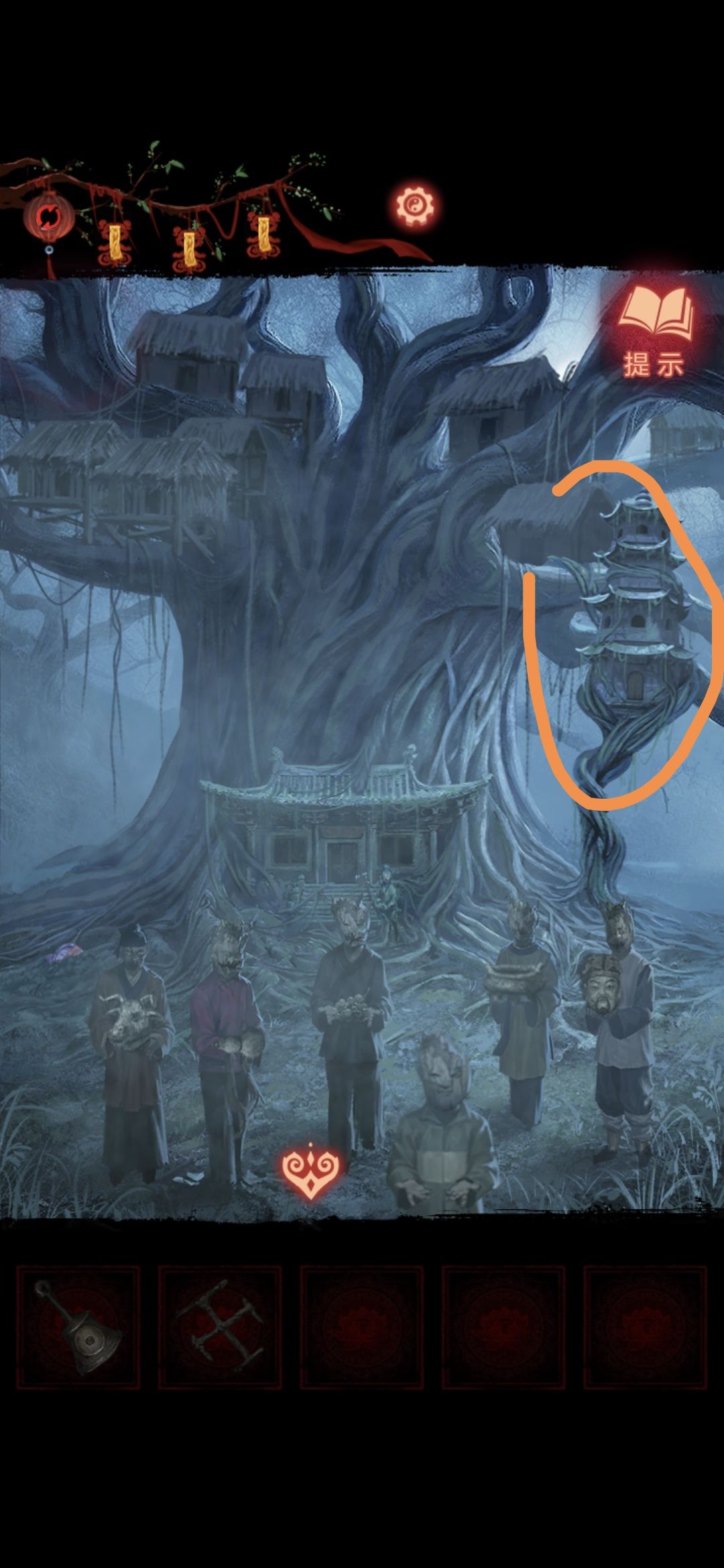 回到树下,点击树上剪纸,根据莫黎视角树上剪纸顺序和树上面具顺序排序,排完序获得木娃娃