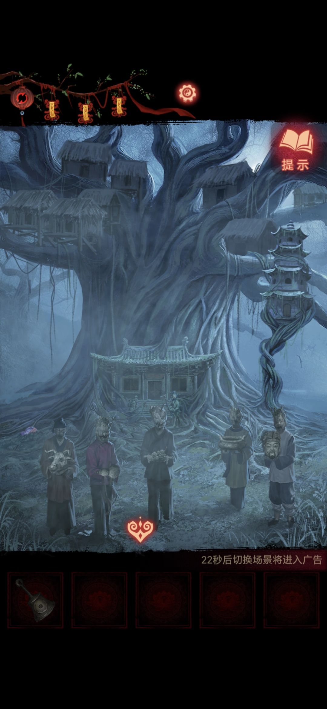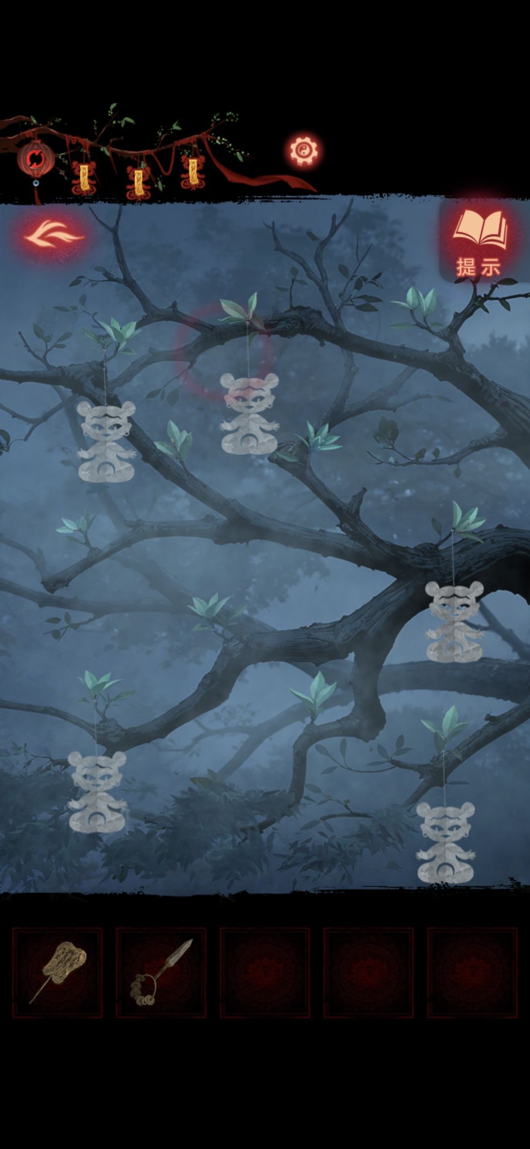 点击树上的灯笼,做小游戏,把所有灯笼都点亮即可,做完变亮