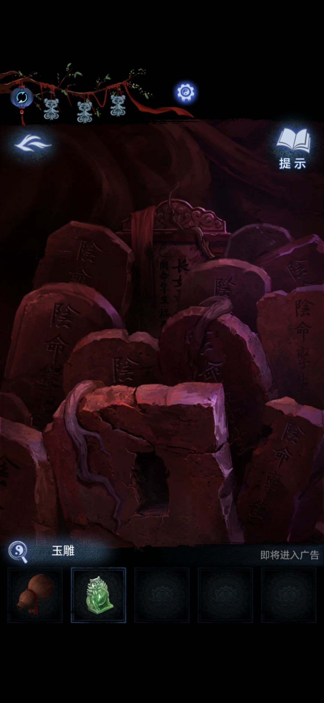 把玉雕放在石碑上的凹槽里,获得大铜钱和布袋