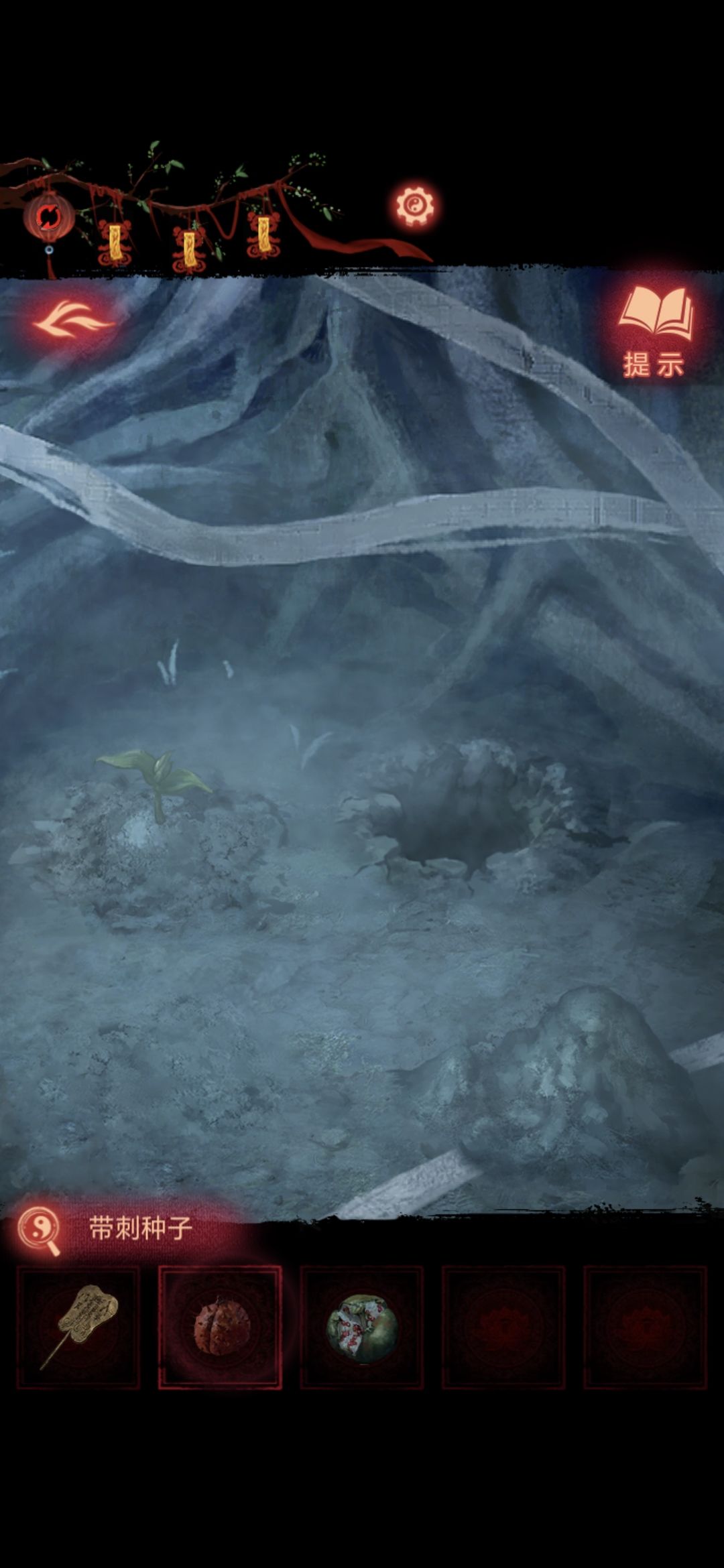 切换莫黎视角,用铜扇扇不倒翁,获得带刺种子和石榴