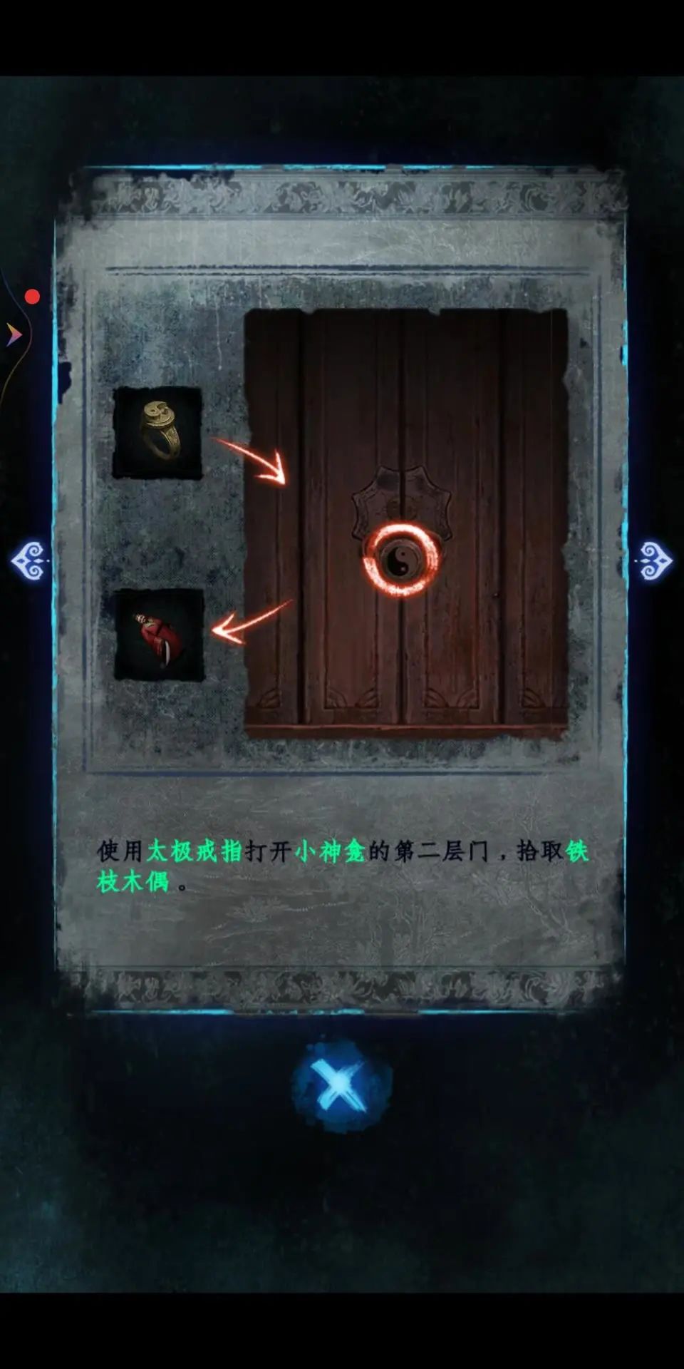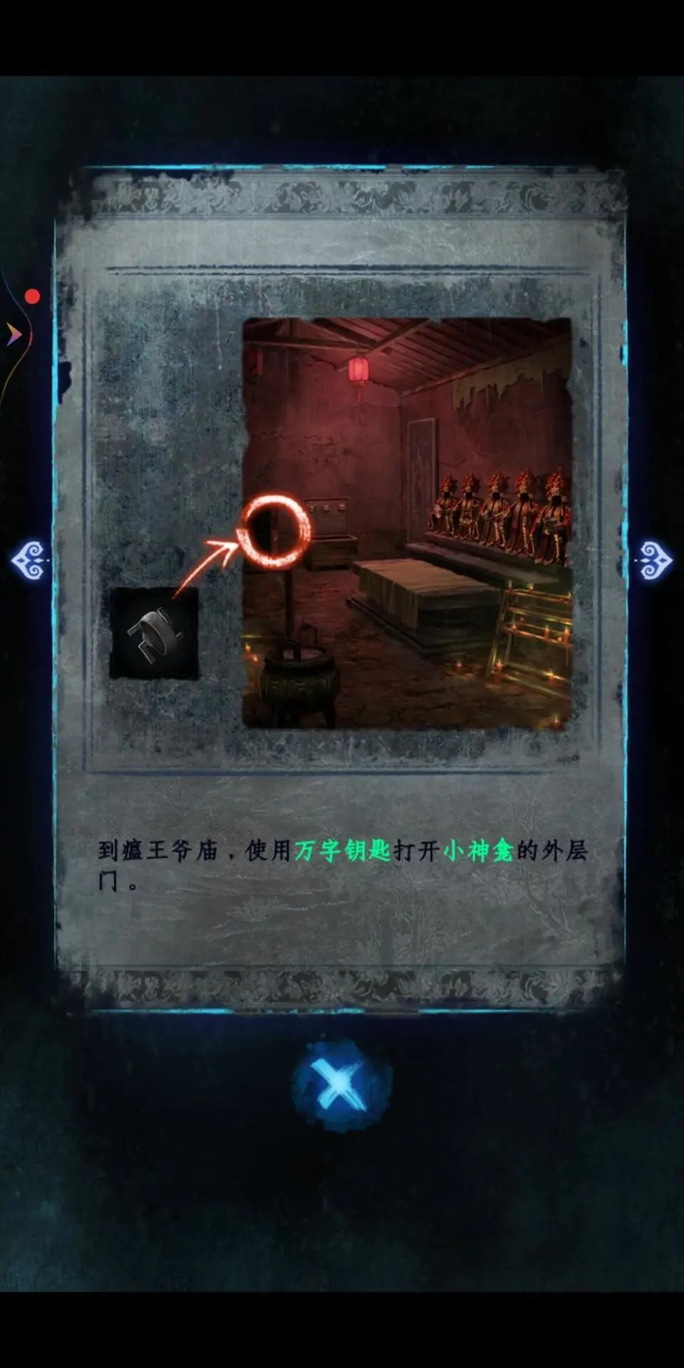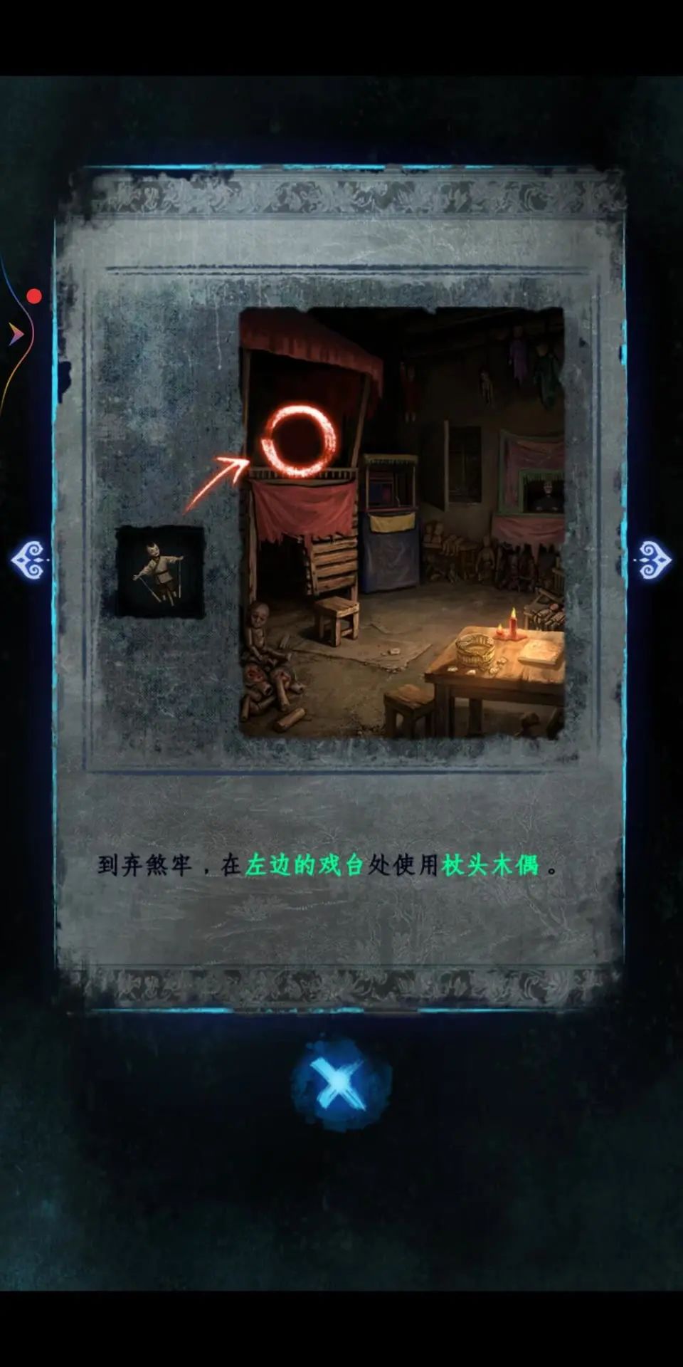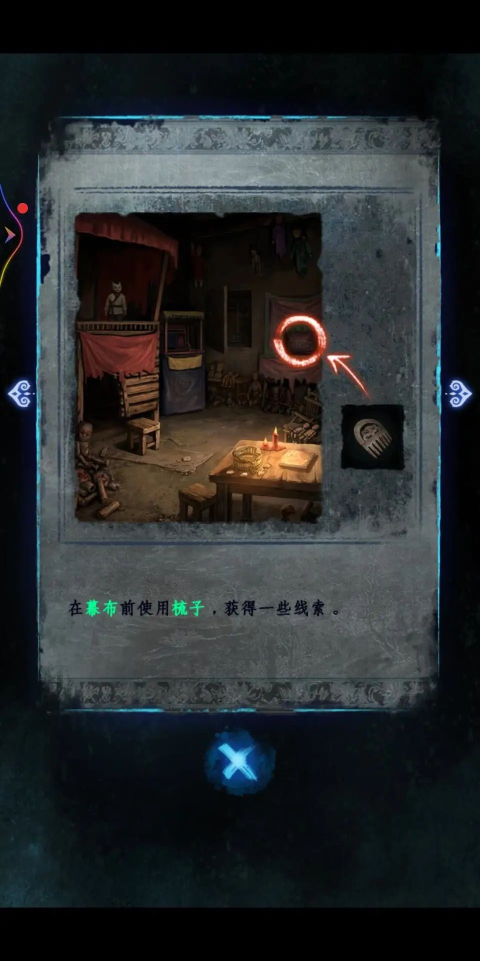 7. 把【人偶】放在车旁红色洞的人偶师手里,将人偶插在刀山上打开左上角小庙门。进入小庙,按蟋蟀腿颜色线索调整左下角香炉,拿到【猪骨头】。用【螺丝刀】处理右边神像上的碎缶,放入【缶】,拿到【小孩人偶】。
