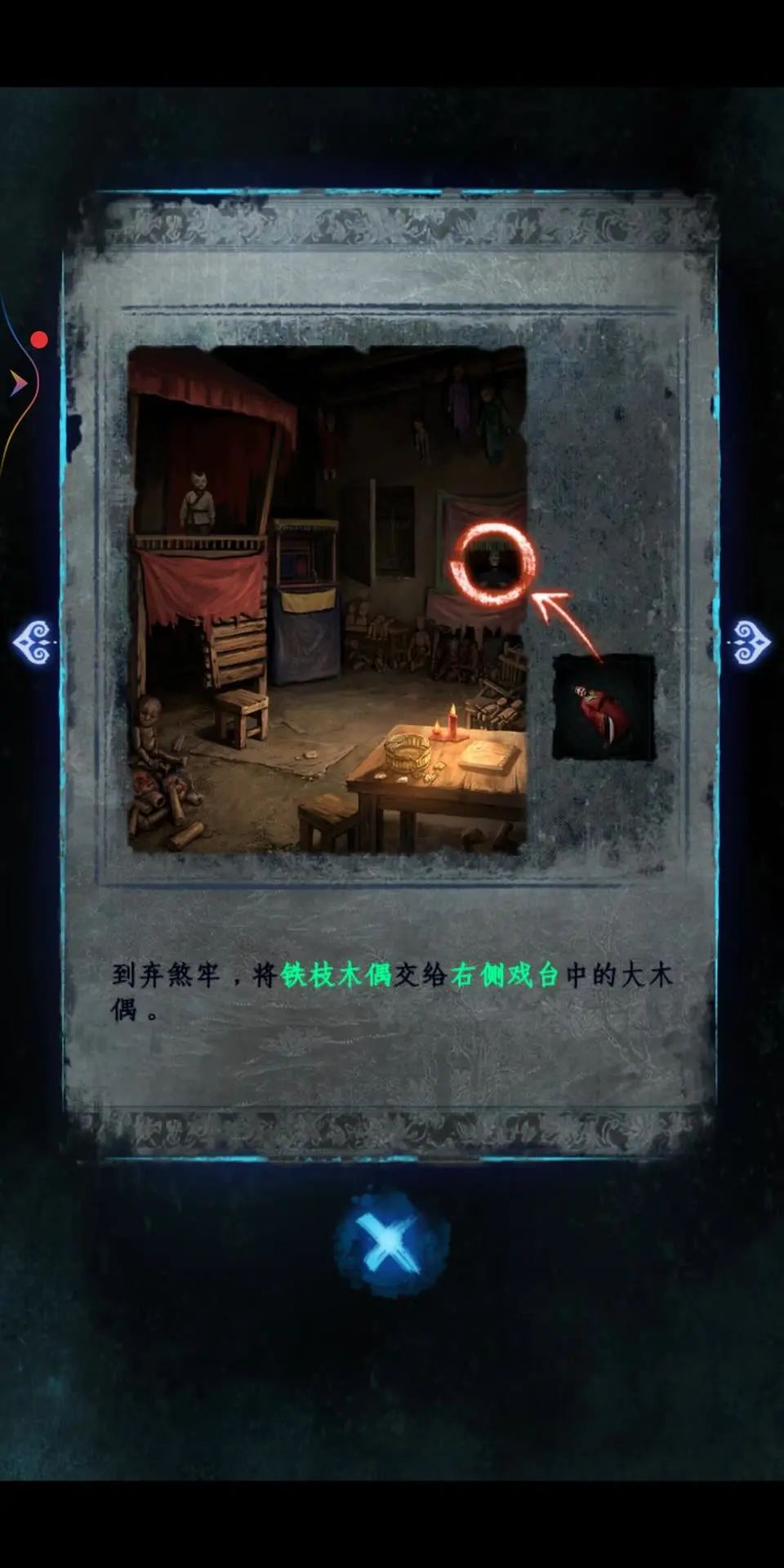 6. 将【小木剑】交给聂莫黎,【浆糊符纸】交给宁子服,剧情后在车轮下拿到【牌位】。左转到山洞,对熊头人使用【牌位】拿到【梳子】和【人偶】。
