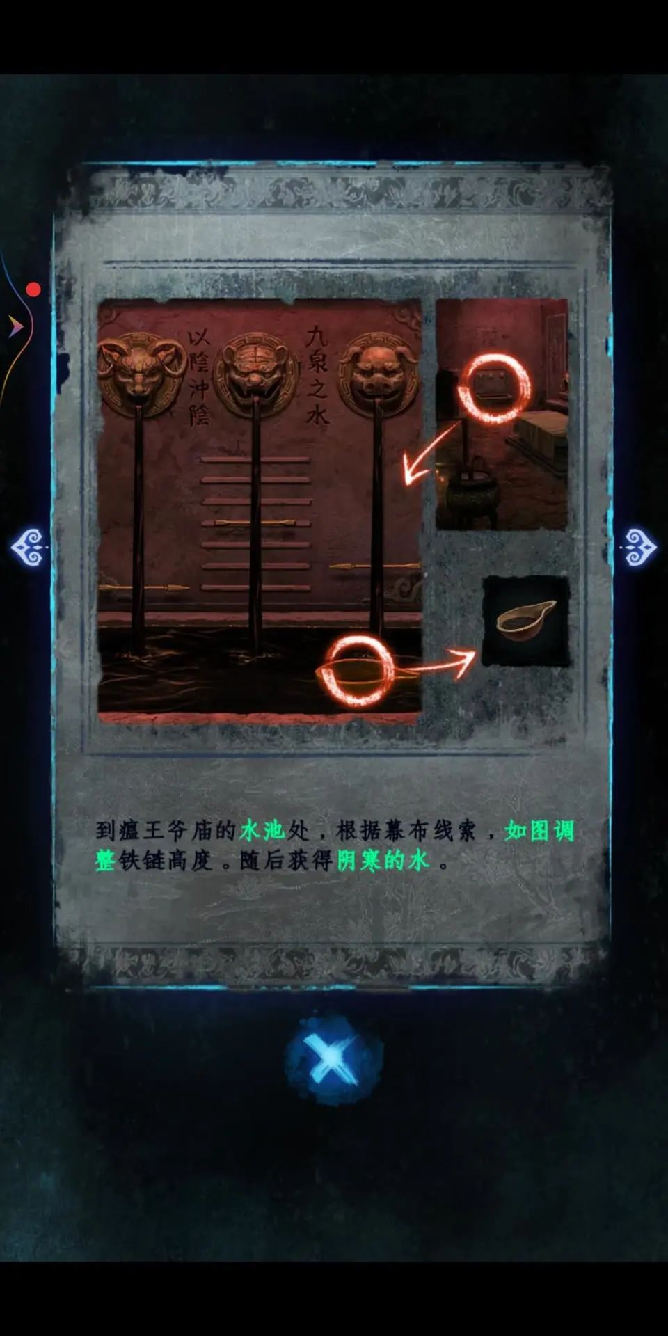 10. 将【兽牙】【猪骨头】【小木剑】交给聂莫黎,进入红色洞穴把【红衣人偶】交给人偶师。出门左转,在小庙按“虎=4”“猪=6”“羊=7”调整机关,用瓢取【黄泉水】,交给宁子服,过完剧情,第四章结束。