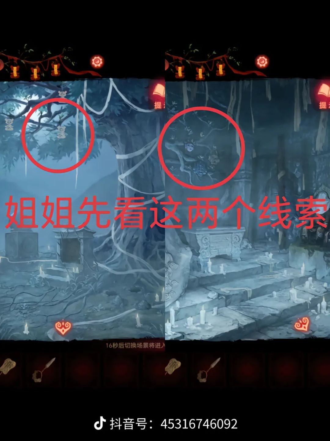 8. 摆放物品:在“梦魇”场景的墓碑群中,从左到右依次摆放布老虎、毽子、小木刀、陶响球、鸠三。