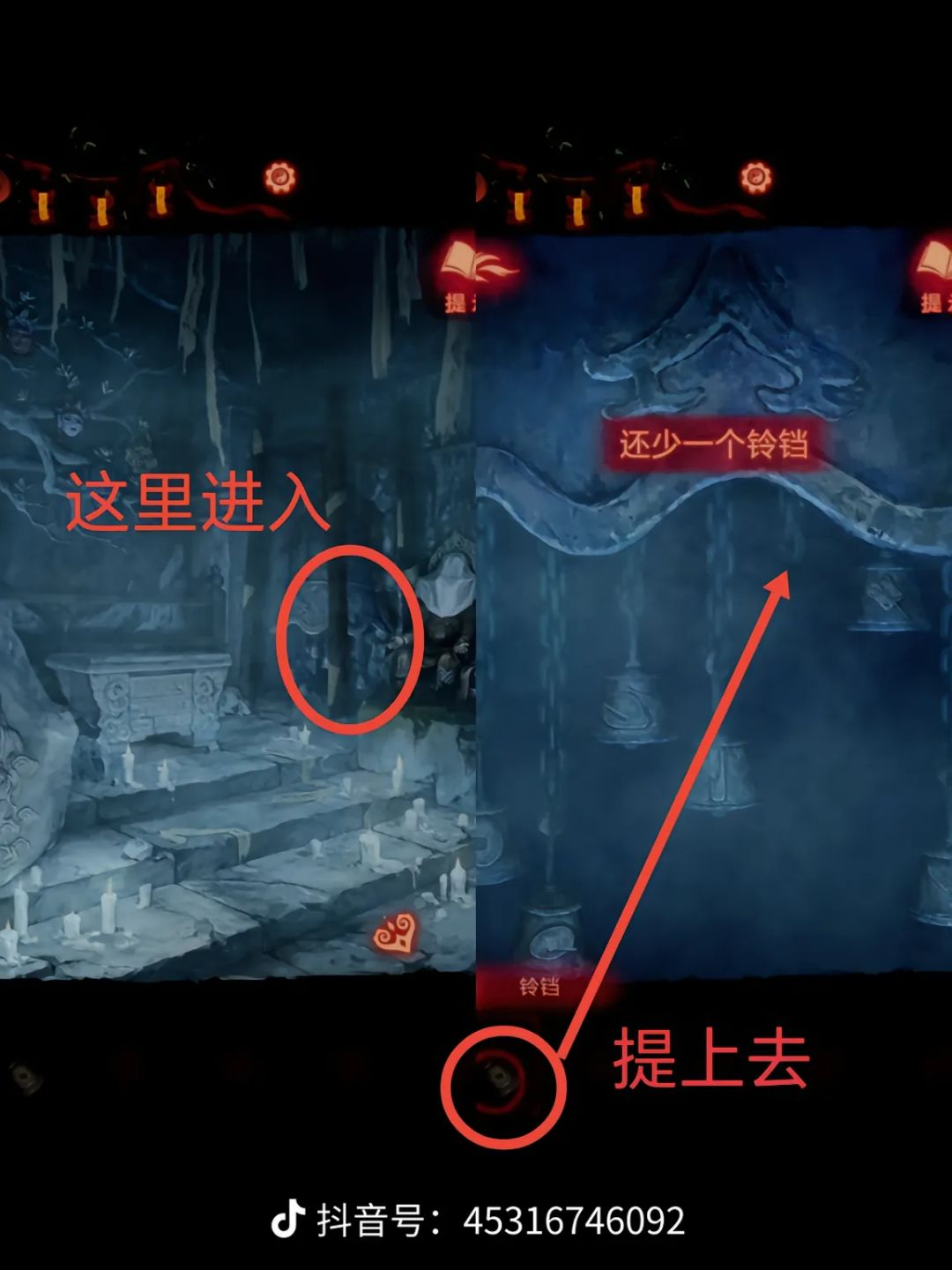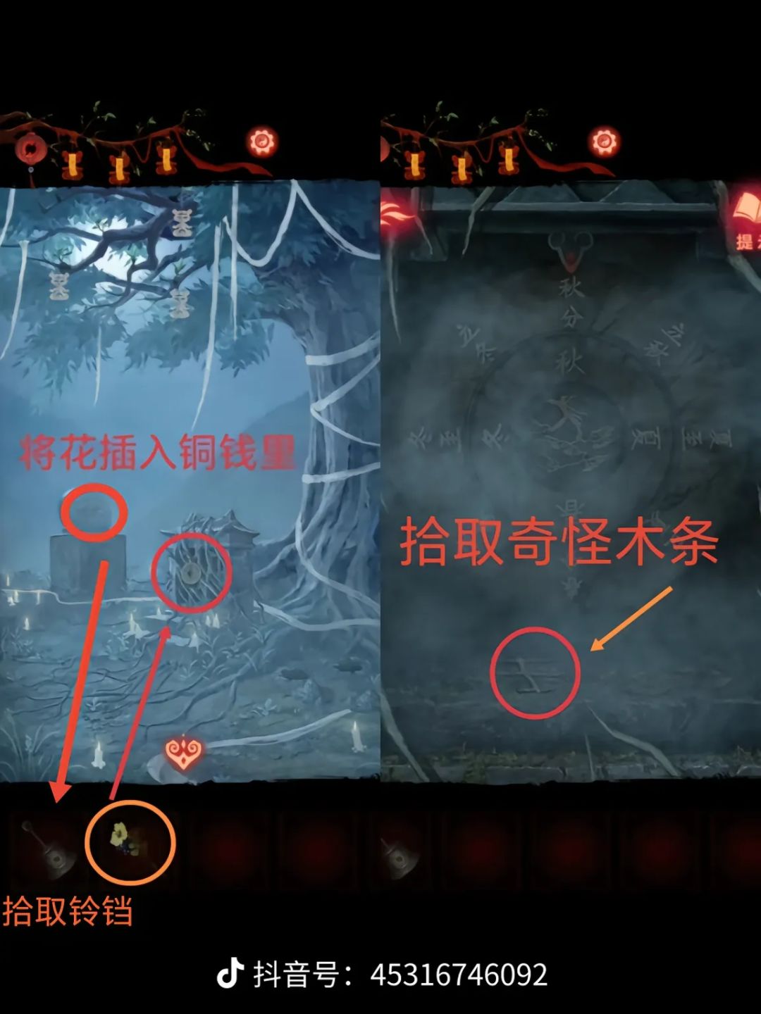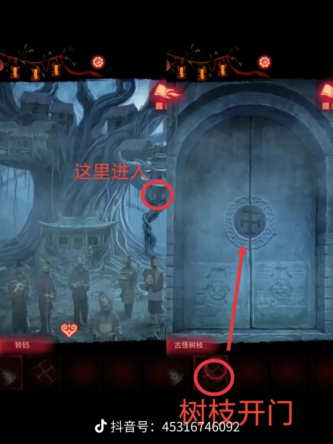 4. 打开寺门:前往对庄的塔门前,镶嵌古怪树枝,打开万物寺的门,“梦魇”场景相应的门也会打开。