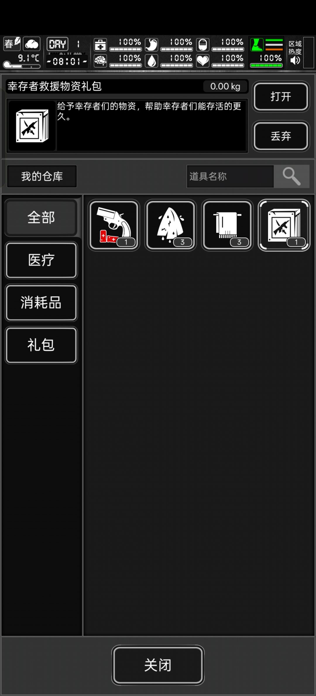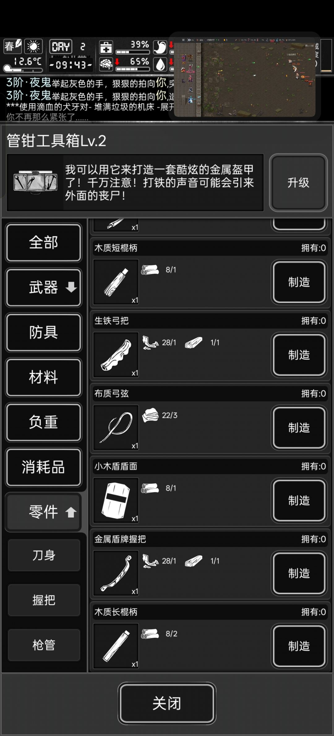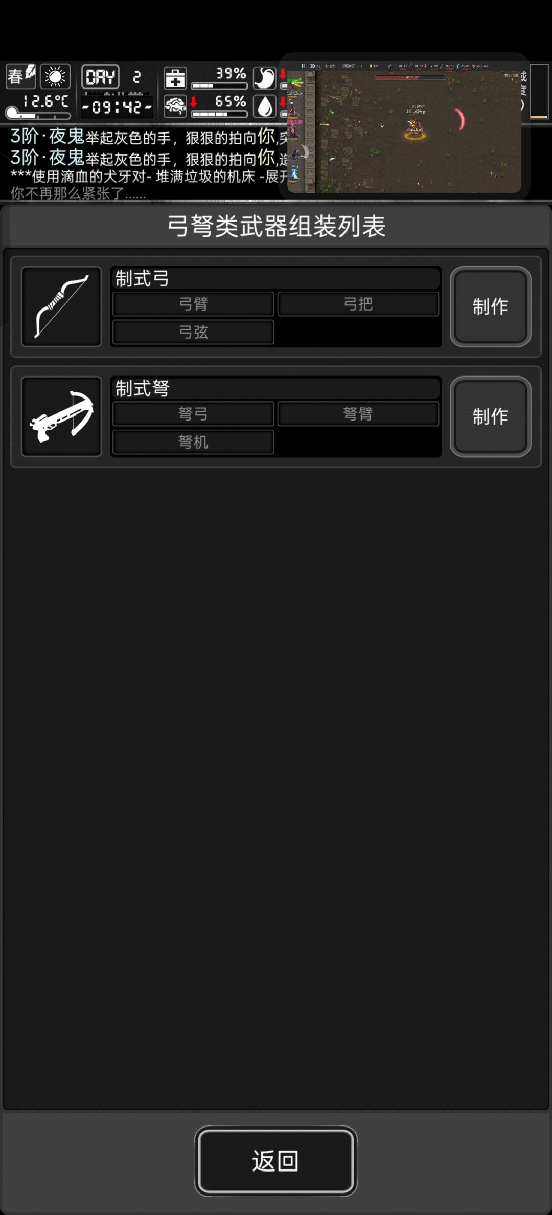 1.开局会给物资箱,里面有新手装备,很多武器需要先制作零件,然后再从装备组装台组装,比如弓,小木盾,武器也有很多插槽,装弹很多都需要提前手动装填,否则带着打架也用不了,背包也有插槽,拓展小腰包之类的