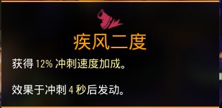 使用效果:此处到冲刺与主动特长冲刺无关,就是正常跑动4秒就会发动特殊使用方法:需要注意的是,有mod会常驻奔跑,有那个mod,好像该特长会不生效,所以根据自身情况佩戴