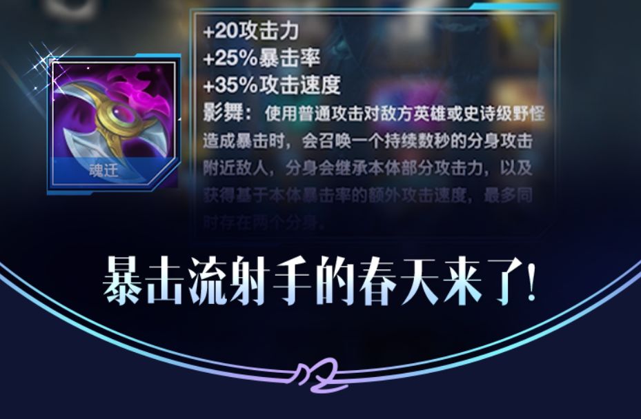 不再需要叠加层数,普攻即可触发额外攻速和移动速度加成,暴击会延长效果持续时间,暴击流射手持续作战能力更强。