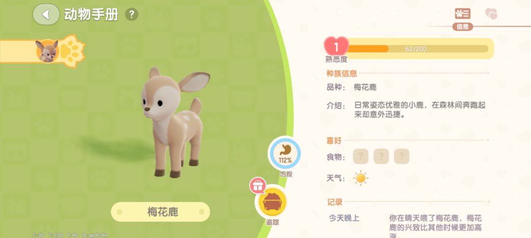 4.点进去“动物”按钮,可以看到动物信息,也可以一键追踪它的食物槽了。
