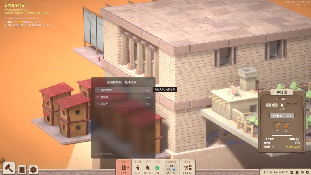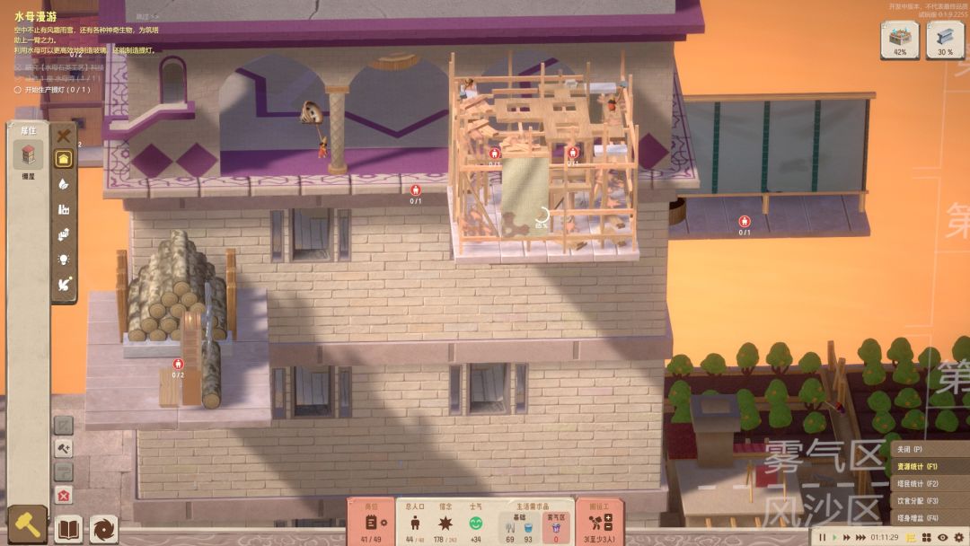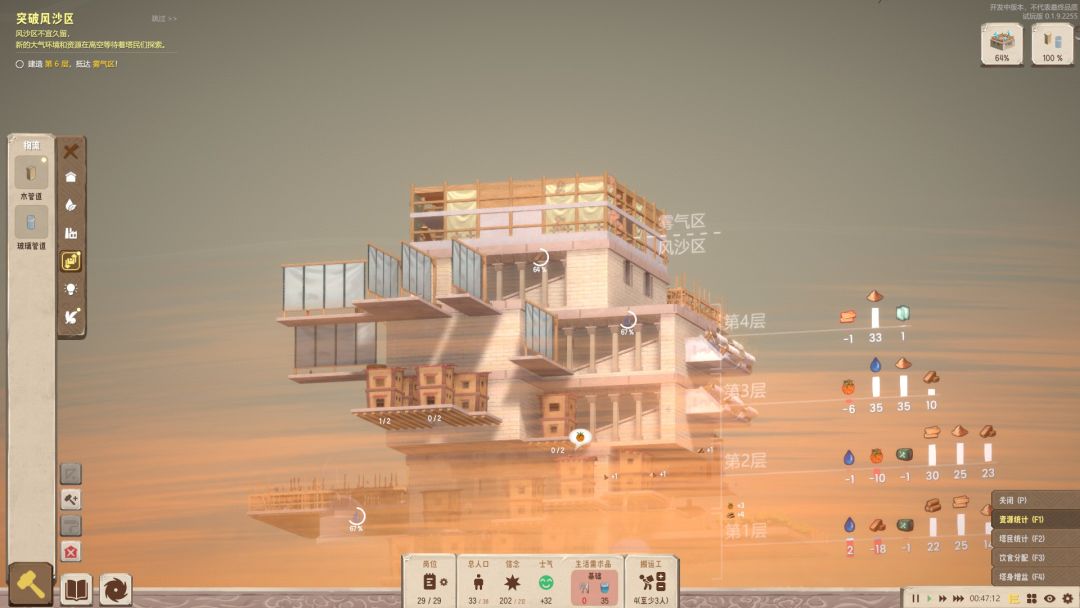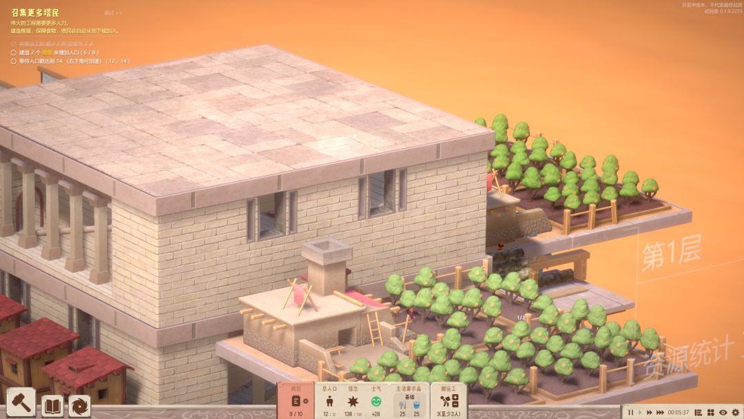 在DEMO版本里,游戏只开放了12层塔身,只有玩到风沙区和雾气区。就目前展露出的玩法来看,制作组确实算得上是脑洞大开。别出心裁的垂直建筑,给城镇建筑玩法带来了截然不同的思路。而不断攀升高度的目标追求,给玩家的建造方向,带来了不一样的挑战。
