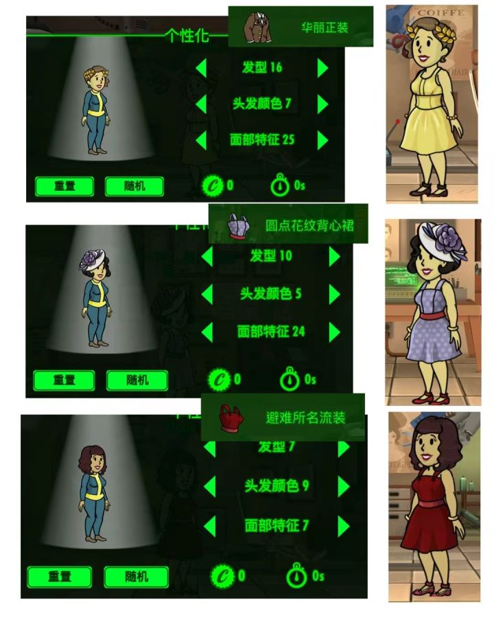 给出任务的女居民搭了几套好看的衣服
